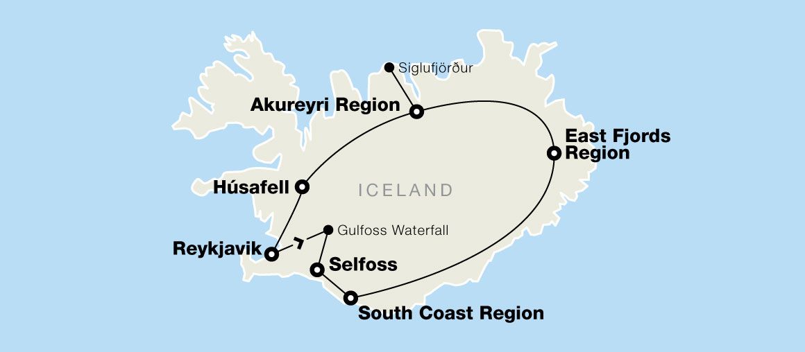 On August 12, 2026, parts of Iceland will experience a total solar eclipse. The itinerary for the tour departing August 5, 2026 may be modified to accommodate the event.
