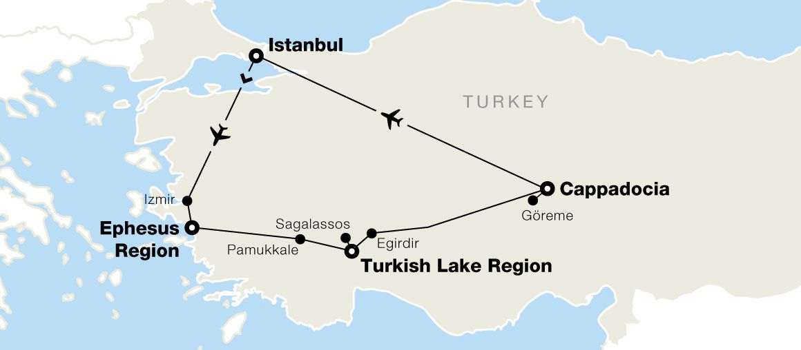 - A flight from Istanbul to Izmir and from Cappadocia to Istanbul are included in the price of your tour.